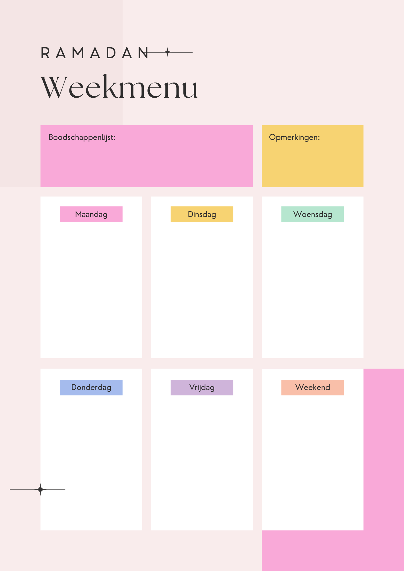 Met dit overzicht kan je een weekmenu samenstellen.